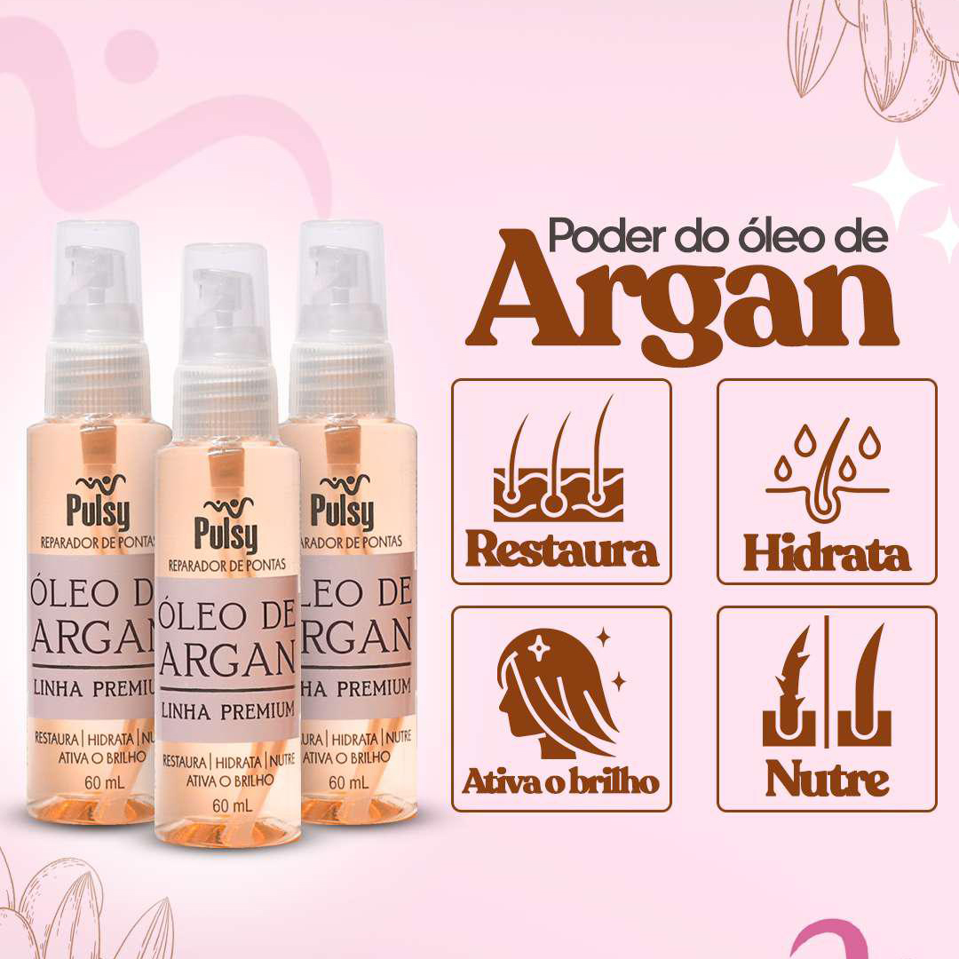 Óleo de Argan Pulsy – Reparador de Pontas | Antifrizz, Hidratação e Brilho Imediato